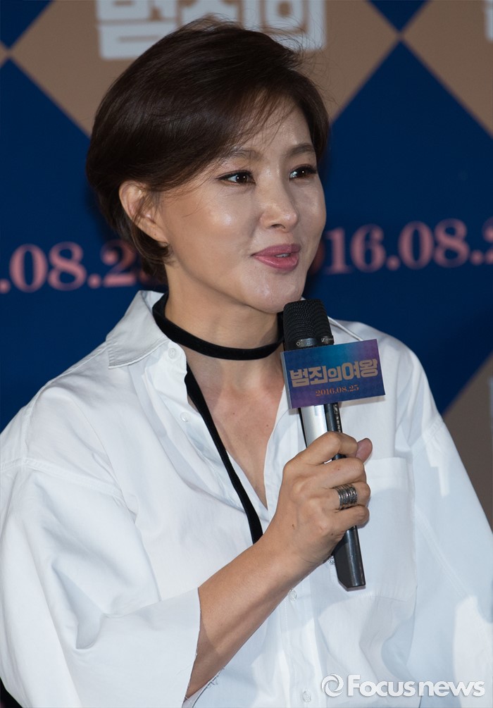 (서울=포커스뉴스) 11일 오후 서울 성동구 CGV 왕십리에서 열린 영화 '범죄의여왕' 언론시사회에 참석한 배우 박지영이 취재진 질문에 답변하고 있다.