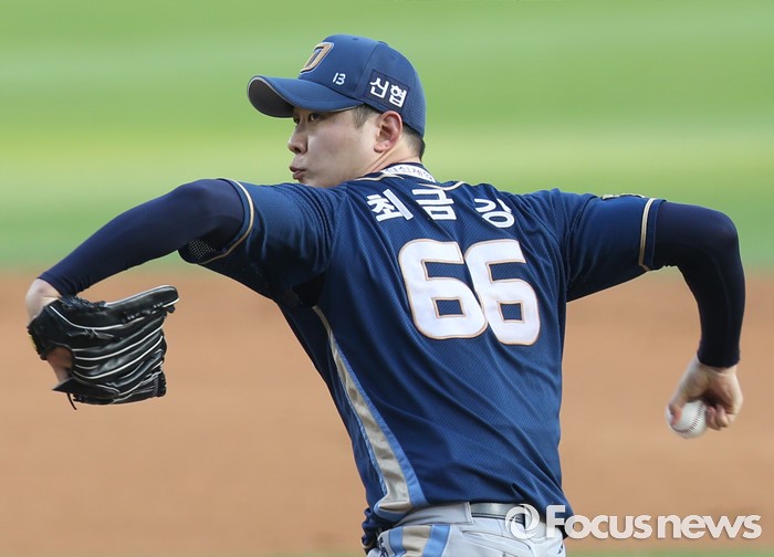 (서울=포커스뉴스) 11일 서울 잠실구장에서 열린 2016 프로야구 NC-LG 경기에서 1회말 NC 선발투수 최금강이 투구하고 있다.
