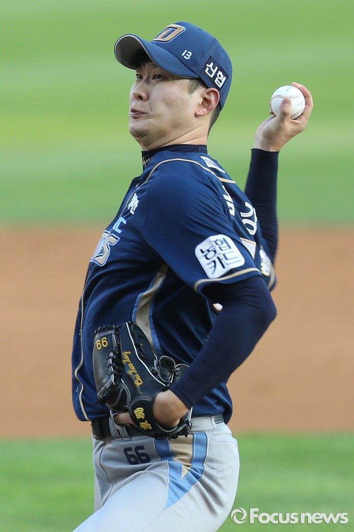 (서울=포커스뉴스) 11일 서울 잠실구장에서 열린 2016 프로야구 NC-LG 경기에서 1회말 NC 선발투수 최금강이 투구하고 있다.